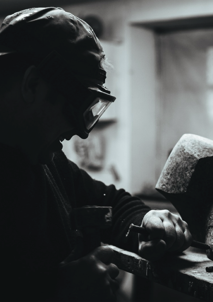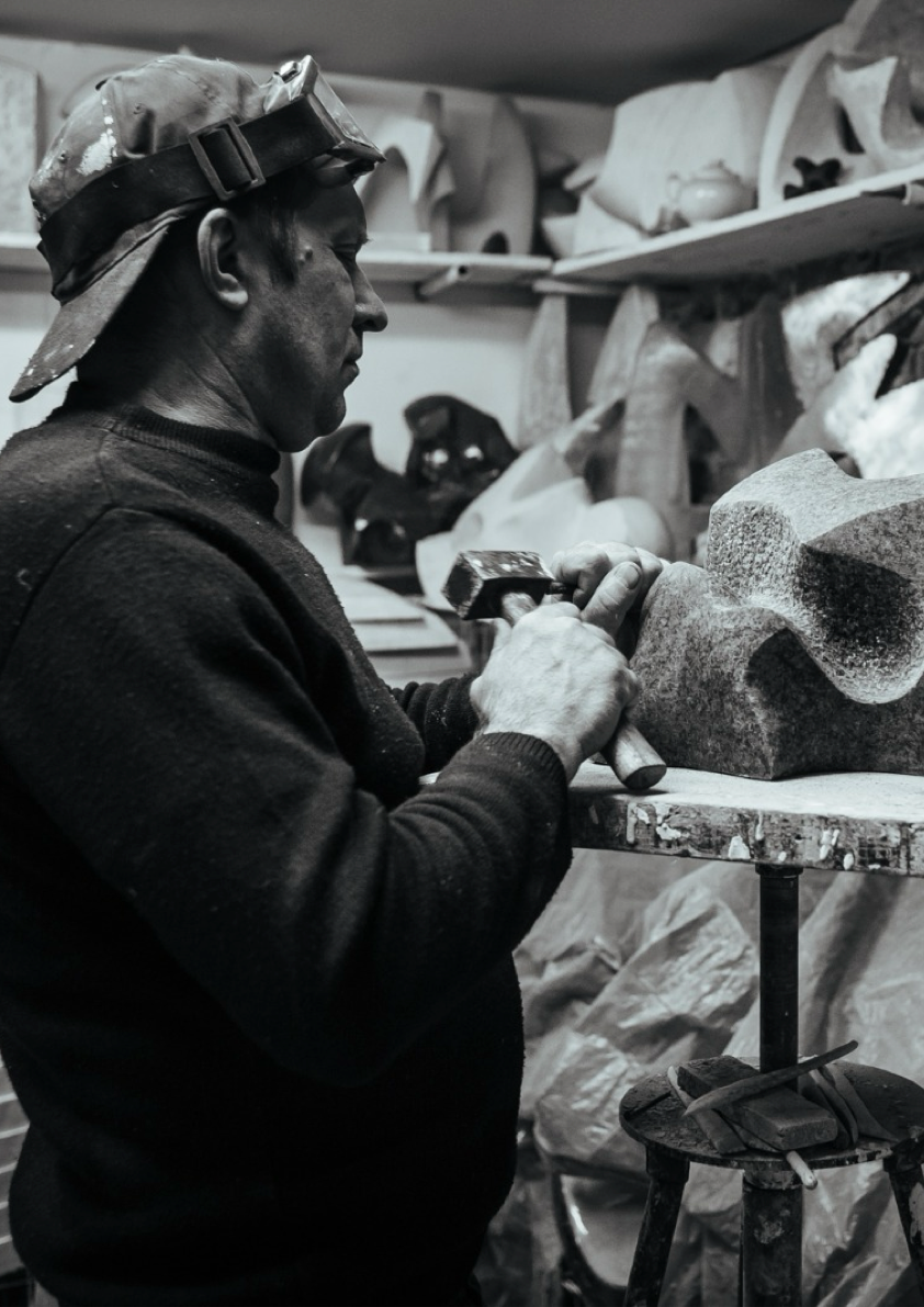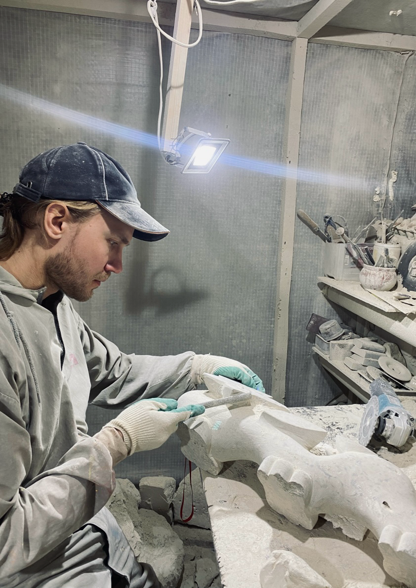 Growing up in a creative family, I was immersed in art from an early age. From my grandfather and father — stone-cutting artists — I inherited the ability to work with stone: a deep respect for the material and its properties, the skill of listening to it and releasing the form hidden inside the block. From my mother, an icon painter, I absorbed the concise visual language of Byzantine imagery — its timeless plasticity and spiritual depth.