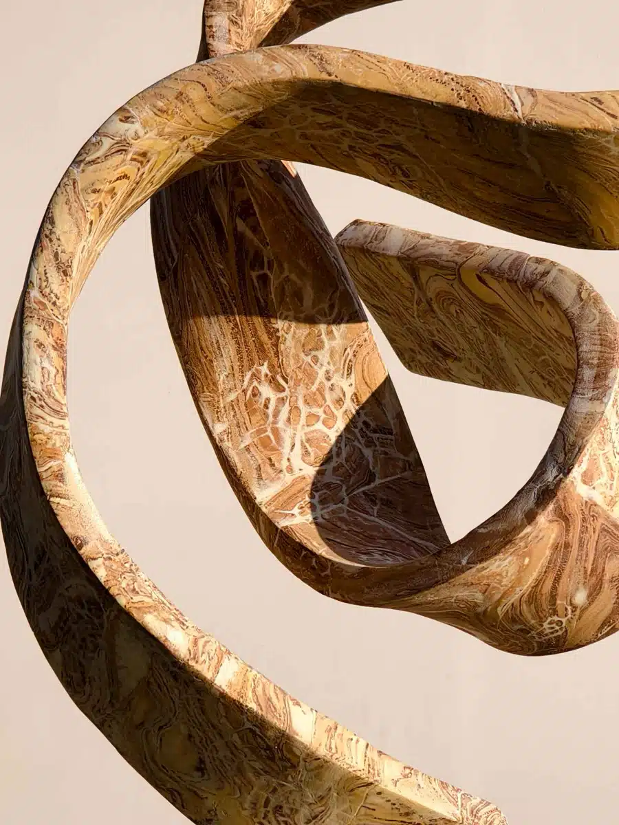 Lev Efimov is a contemporary Russian sculptor whose artistic journey began with street art and photography and eventually led him to create unique plastic forms. Born in Pskov and trained as a psychologist, he retained a particular sensitivity to human perception and the environment, which became an integral part of his artistic practice. For many years, Efimov worked as a photographer, collaborating with magazines such as Vogue and Grazia, crafting compelling visual narratives. In 2020, during the pandemic, he made a decisive turn toward sculpture and founded his own studio, transforming it into a laboratory for experimentation with materials and form. His works are inspired by the fluidity and organic quality of lines, balancing softness and strength, where nature converges with the aesthetics of digital 3D thinking. Each of his creations embodies a pursuit of harmony between nature and technology, tradition and the future, turning his sculptures into more than objects—they become mediators of dialogue between space and human presence.