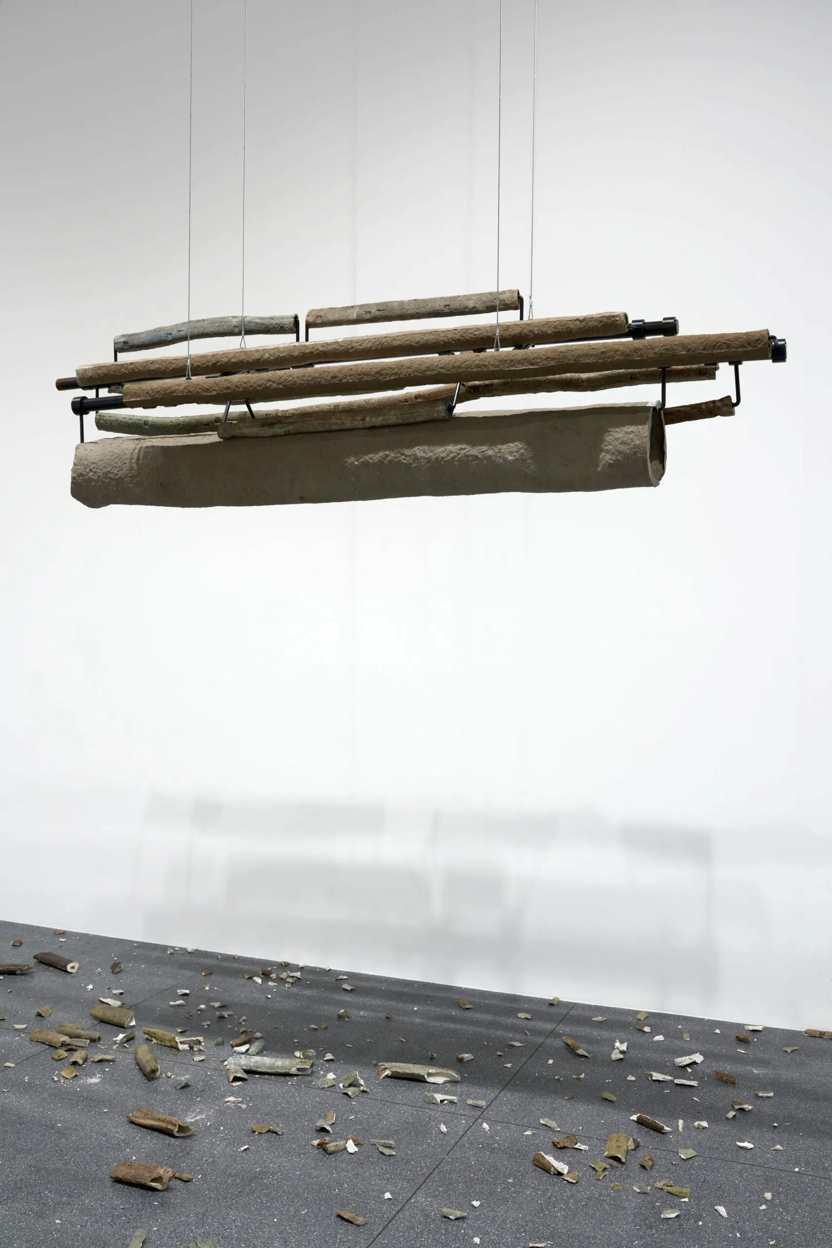 As a result of this technique, her sculptures contain remnants of the human body and touch, but are transformed beyond their former purpose, creating a unique dialogue between the past and the present. For example, one of her works, “Fragility of the Epoch”, is a series of suspended sculptures made from abandoned building materials that form the skeleton frame. They cause a sense of decline and dissolution, while simultaneously suggesting the possibility of transformation.