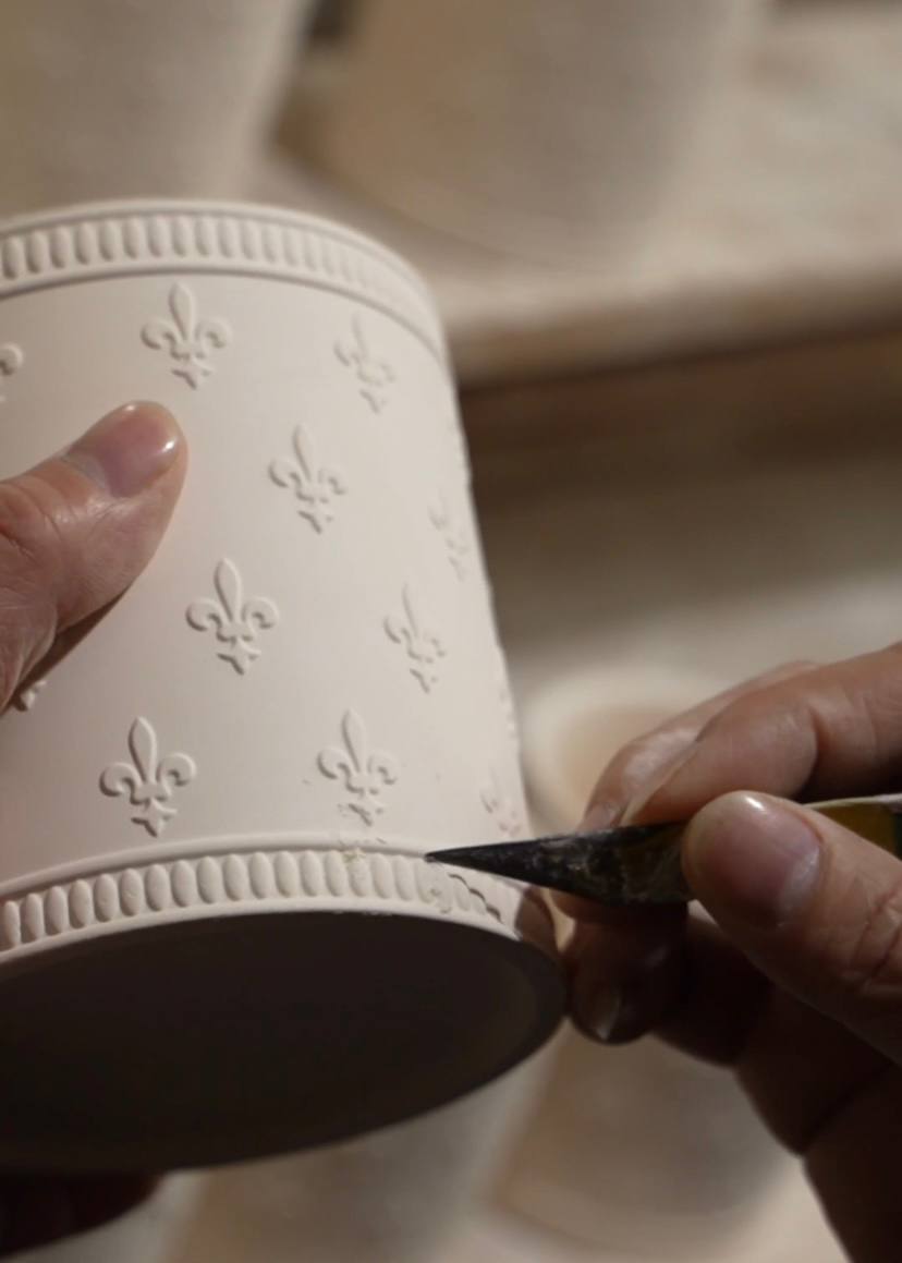 The glass domes encasing the candles are transformed into works of art by sculptors who hand-carve cameos, creating miniature bas-reliefs.