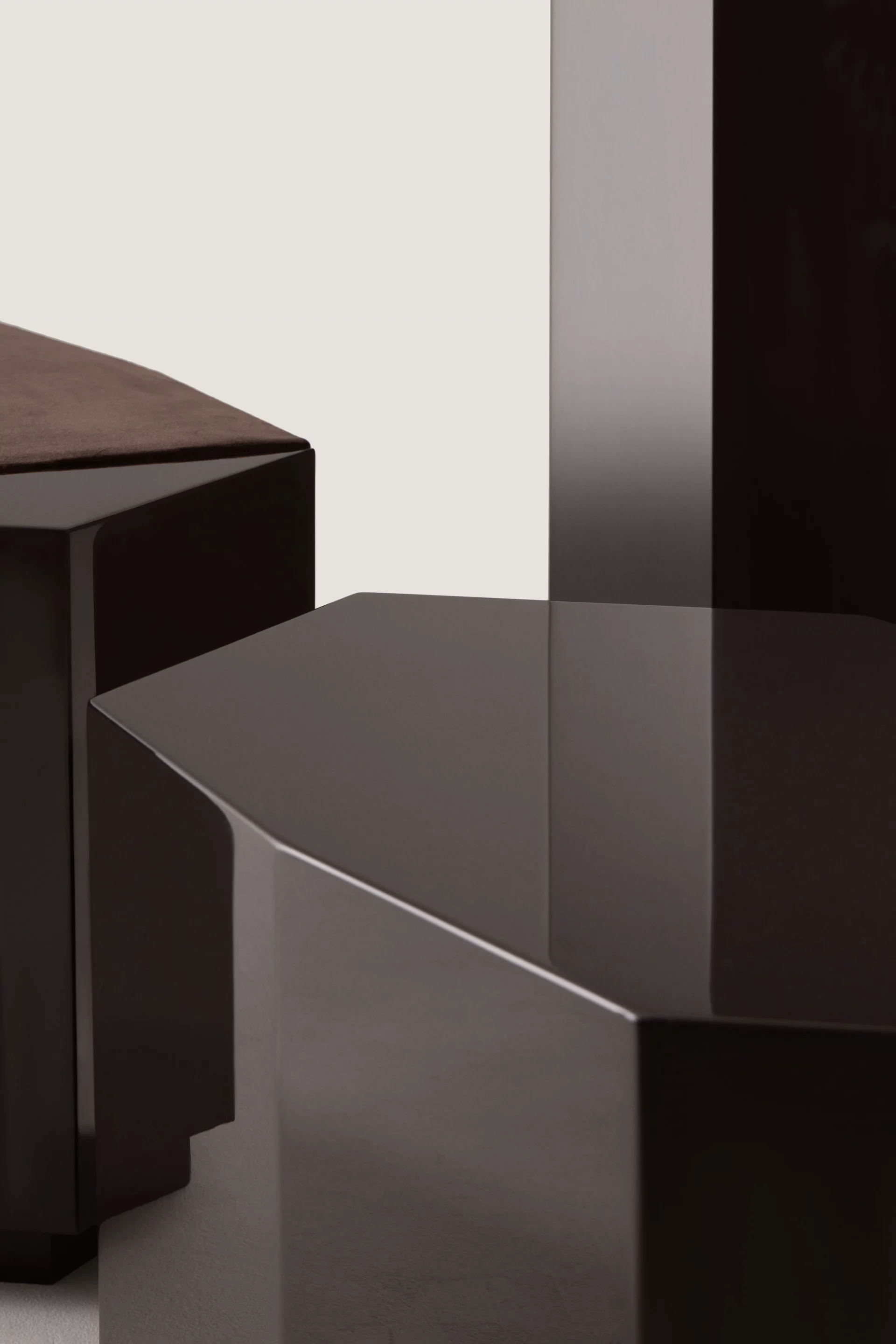ZW: For me, this is about sensuality above all. Color operates on several levels: its temperature, depth, and degree of gloss evoke different perceptions. Gloss amplifies the effect — surfaces reflect their surroundings, distortions become a story. These objects live as architectural gestures on a smaller scale: they interact with space and become active participants. I chose this color intuitively: neither black nor brown, but something about warmth, depth, taste.